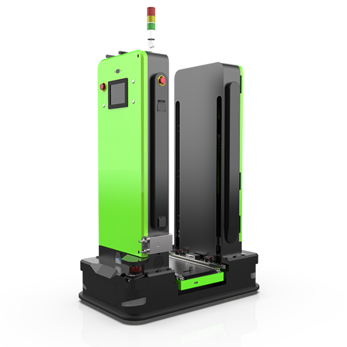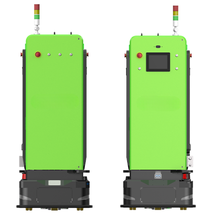 R3-03是一款SMT产线定制型AGV, 可采用二维码导航、SLAM导航技 术,负载能力300KG。适用于运 输筐装PCBA板物料进行不同高度 的自动转运,运行灵活,行驶稳定。