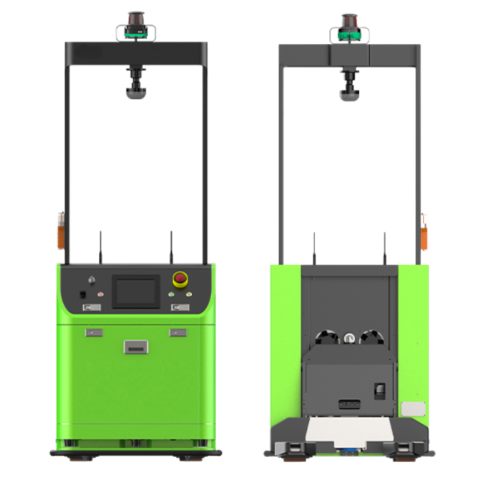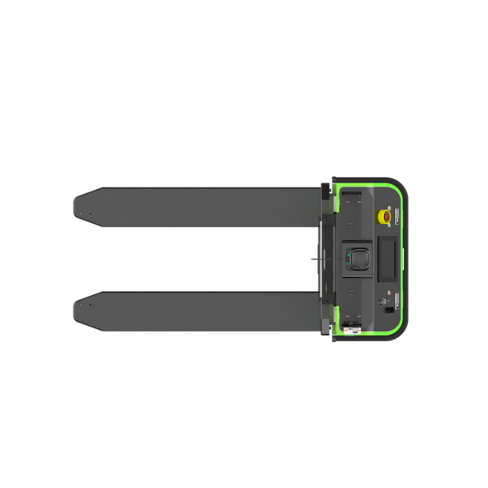 R5-B2是一款搬运式无人叉车机器人,专为标准化托盘的自动化搬运设计的,是工厂 自动化、智能化的核心设备之一。叉车式AGV通过系统控制,自动接收任务, 完成货物点对点运输。